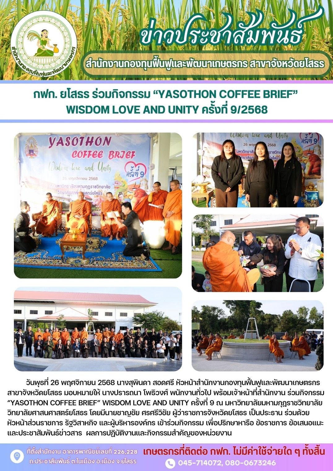 กฟก. ยโสธร ร่วมกิจกรรม “YASOTHON COFFEE BRIEF”WISDOM LOVE AND UNITY ครั้งที่ 9/2568