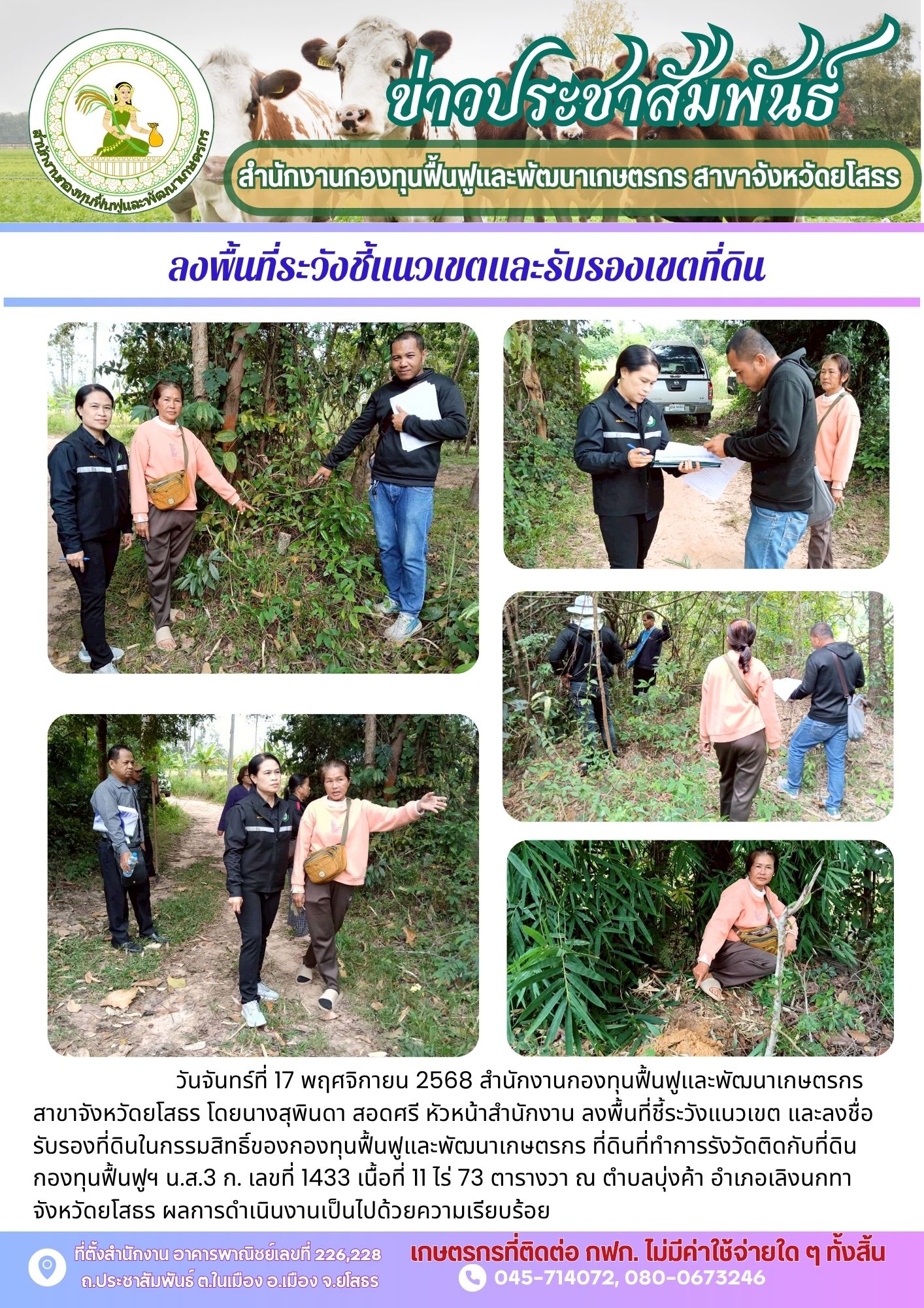 กฟก ยโสธร ลงพื้นที่ระวังชี้แนวเขตและรับรองเขตที่ดิน