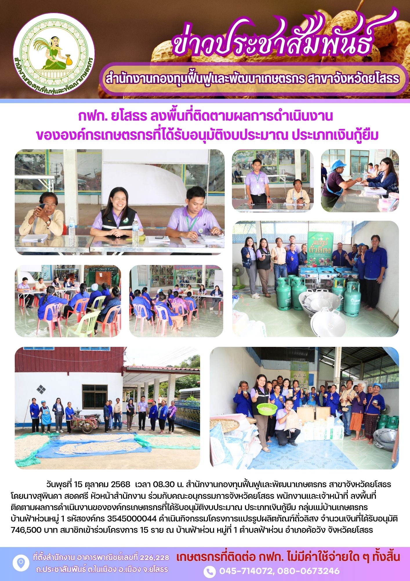กฟก. ยโสธร ลงพื้นที่จัดกิจกรรมตามโครงการฟื้นฟูและพัฒนาเกษตรกรที่ได้รับอนุมัติงบประมาณ ประเภทเงินอุดหนุน